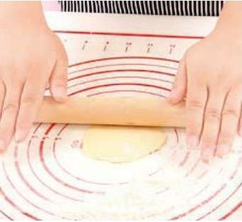 制作饼干、面包、派皮时需要揉和面团或者擀开饼皮,在砧板上操作不够光滑,揉面会粘连需要撒大量的干粉防粘,擀出的派皮或者饼皮不够平整,在厨房案板上操作又不够卫生,这时硅胶垫就不可或缺了。直接垫硅胶垫,揉面不粘,不用撒粉,擀出的面片非常光滑平整,方便操作,省时省力。