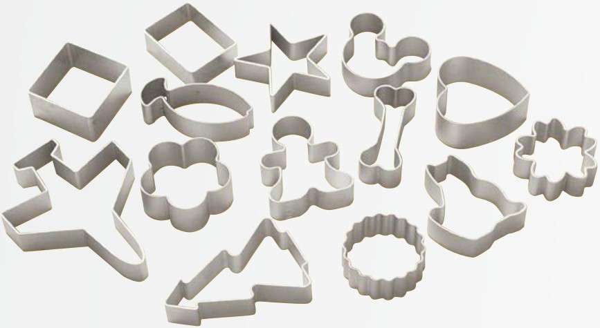 饼干模具,常见的饼干模具一般有铝制和塑料2种。铝制的一般只用来切平面饼干,而塑料的饼干模具除了和铝制的一样有切平面的,也有可以制作立体饼干的花式模具。饼干切一般价格不高、经济实用,买1个可以切一堆,所以喜欢的可以各种样式备一些。