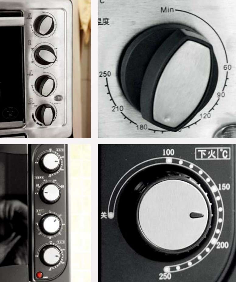 电脑版烤箱不存在精准控温的问题,而机械版烤箱为了实现更精准的控温,就必需注重温度键的形状设计,以下图2种温度键示范: