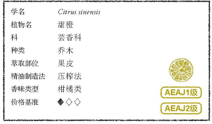 甜橙精油与柑橘类精油契合度佳,不过如果用于调配的全都是柑橘类精油,香味很快就会挥发,与挥发性为中音或低音的花香类精油调配,才能让香味持久。