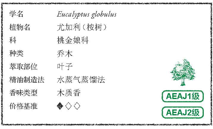 尤加利精油的香味非常鲜明爽朗。搭配香草类精油可以调配出给人清爽印象的香味,与依兰精油搭配能够让依兰精油浓厚的甜味不再令人在意。