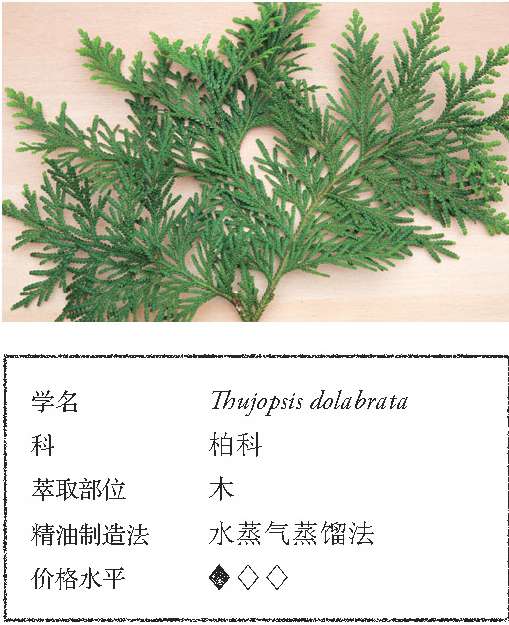 对于日本人来说,扁柏是具有亲切感的树木,自古就被应用在日本建筑中。其精油不只来自树干,还来自枝叶,拥有比较柔和的香气,带着些泥土的清香,可以安抚心灵、疗愈身心。