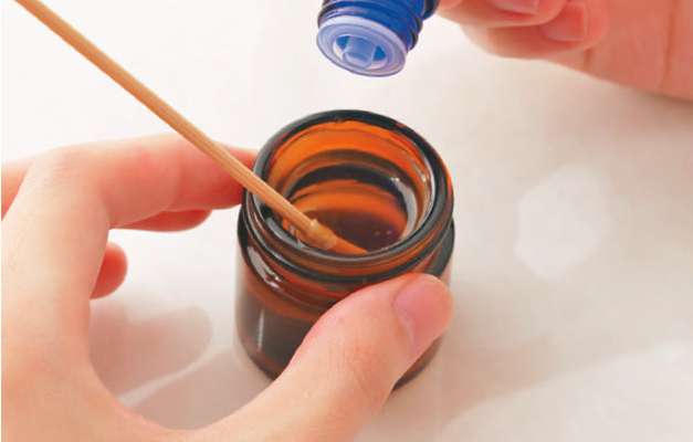 4 晾凉后,添加精油,再用竹签充分混合搅拌。