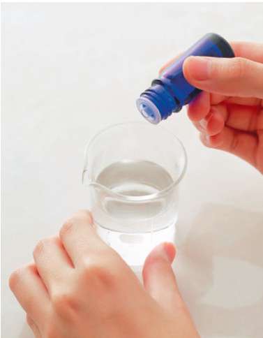 1 量取酒精放入烧杯中,加入精油混合搅拌。