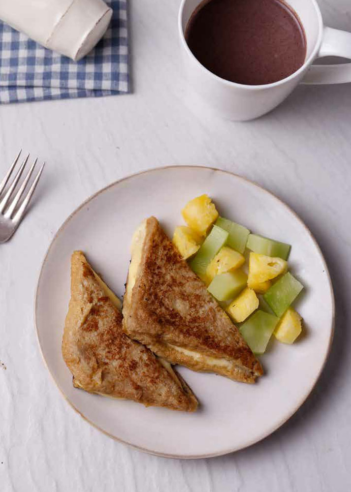 3 平底锅烧热,转小火,可用少许玉米油润锅,将蘸好蛋液的馒头片放入锅中,双面煎熟即可。
